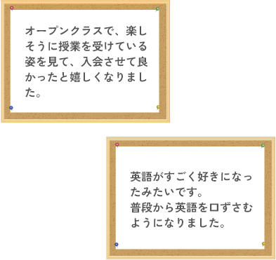 各学期末の最終レッスンでは、1学期でできるようになったことを保護者の皆さまに観ていただく発表の場にしています。お楽しみに♪